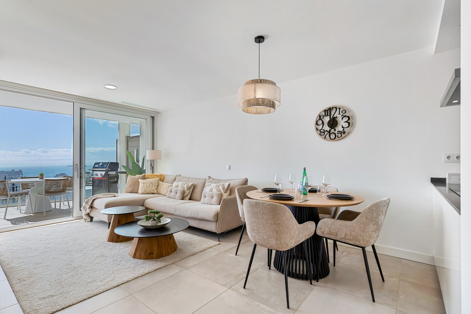 This modern 2-bedroom, 2-bathroom Airbnb apartment is located in the exclusive Reserva del Higuerón, nestled on the border of Fuengirola and Benalmádena. Offering stunning views of both the ocean and the city, the apartment provides a comfortable and stylish retreat, with a spacious open-plan kitchen and living area. The large terrace, perfect for relaxing, lets you enjoy the view, even though there’s some construction happening nearby. Despite this, the vistas remain impressive and make the apartment a great choice for your stay.